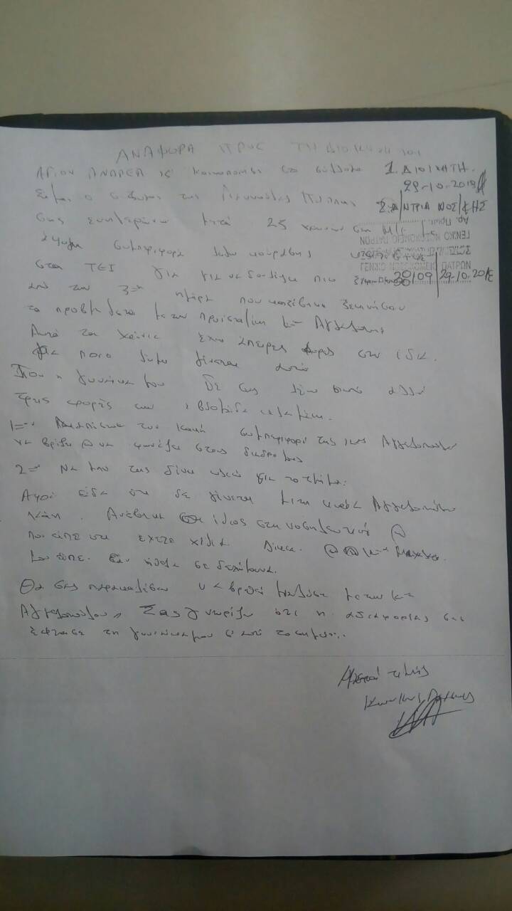 Απόπειρα αυτοκτονίας Νοσηλεύτριας στο Γενικό Νοσοκομείο Πατρών «Άγιος Ανδρέας» την Παρασκευή 26/10/2018 το πρωί στα Τακτικά Εξωτερικά Ιατρεία.