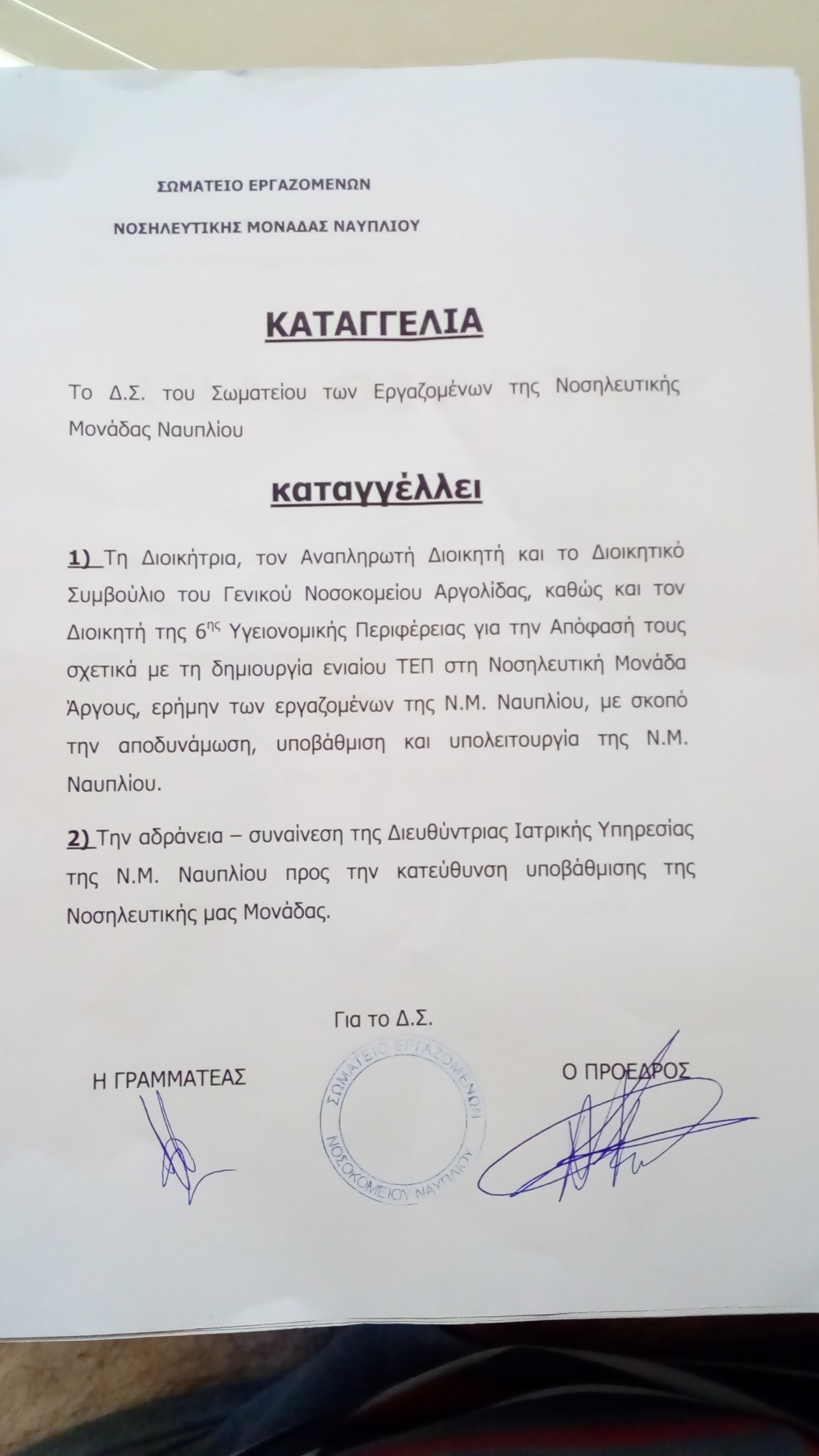 χωρίς αποτέλεσμα, αλλά και από τον Διοικητή του Νοσοκομείου πού μας ζήτησε να