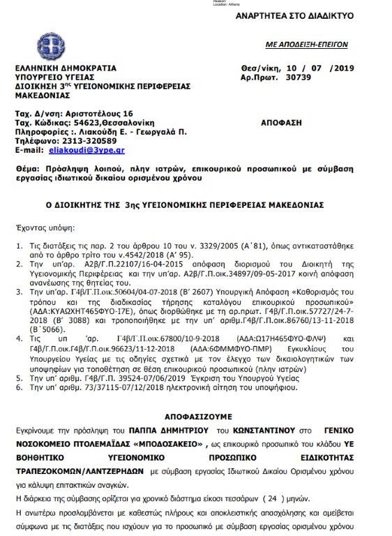 Ο Διοικητής της 3ης Υγειονομικής Περιφέρειας χθες και προχθές υπέγραψε και αναρτήθηκαν στη Διαύγεια πάνω από 15 προσλήψεις συμβασιούχων με 24μηνες συμβάσεις. Εντελώς με ρουσφετολογικά κριτήρια!!! Εκτός ΑΣΕΠ!!! Δεν τηρείται καμία σειρά προτεραιότητας ούτε λαμβάνονται υπόψιν η μοριοδότηση των υποψηφίων.